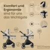 Puncture-proof gel tyres, quick one-step fold and full comfort from birth up to 22kg.